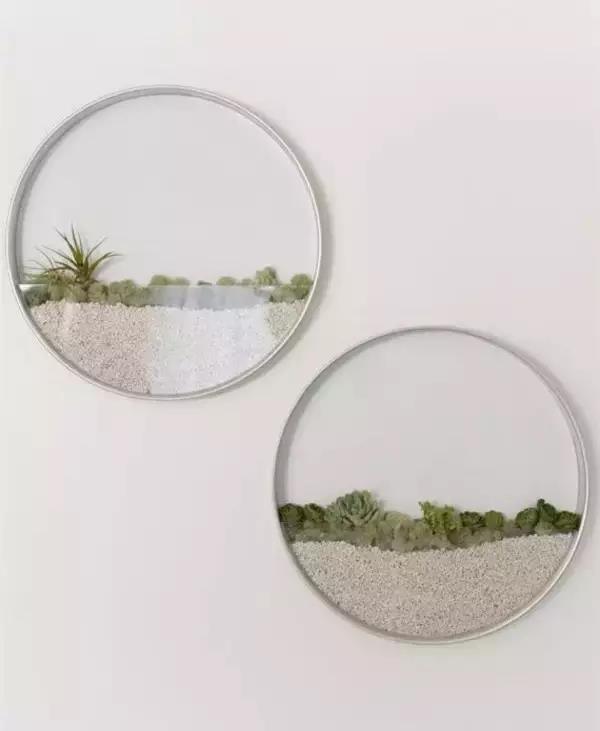 小苔蘚和小多肉 用這樣一個(gè)圓形器皿裝沙子 簡潔利索,也很干凈