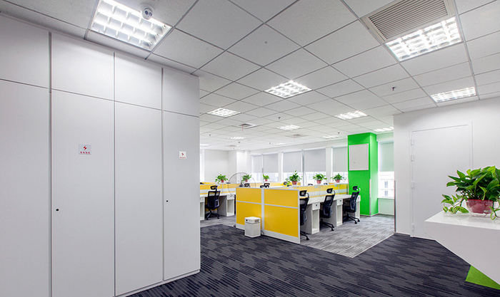 2、天花板裝飾:寫字樓天花板裝修力求簡潔,建議大家采用石膏板和礦棉板或鋁扣板吊頂,而且只在重點(diǎn)區(qū)域,如接待區(qū)、會議室做一些石膏板造型天花,其他地方則是采用礦棉板天花,沒有任何造型可言;