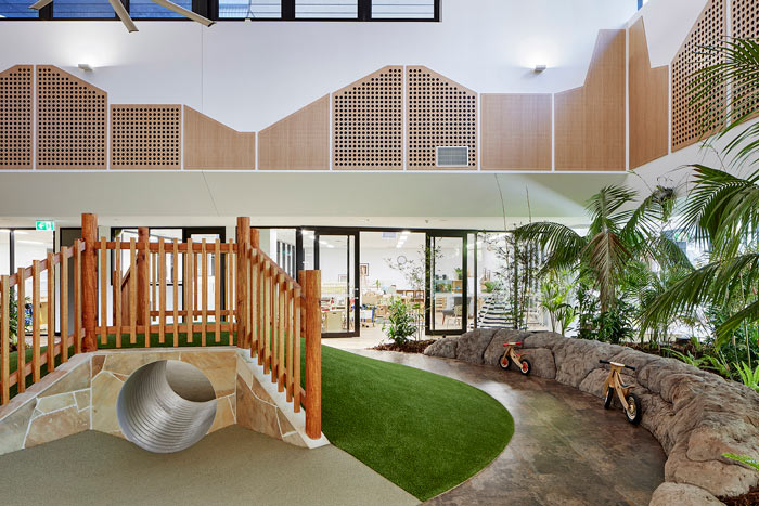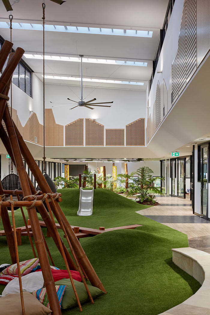 【早教中心裝修廳設(shè)計(jì)】自然區(qū):這里還原了很多自然屬性,孩子對(duì)于世界的認(rèn)識(shí)是初步的,設(shè)計(jì)師希望讓孩子在這里逐步去了解自然,讓孩子通過自己不斷的發(fā)現(xiàn),激發(fā)孩子的想象力。
