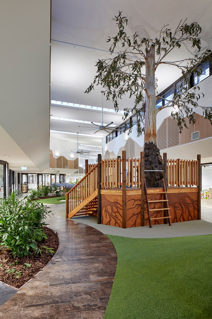【早教中心裝修廳設(shè)計(jì)】樹木區(qū):樹木的出現(xiàn)讓空間自然的氣息更加濃郁,樹可以用來遮風(fēng)擋雨,一來培育孩子自力更生的能力與意識(shí),二來也表現(xiàn)出企業(yè)對(duì)于孩子的期望與關(guān)懷。