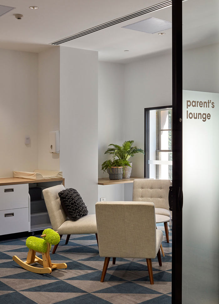 【早教中心裝修廳設(shè)計(jì)】交流區(qū):這里是家長與老師交流的區(qū)域,在這里老師們會(huì)定期向腳掌匯報(bào)孩子的狀況,讓家長對(duì)孩子的進(jìn)步了如指掌,讓家長放心、安心。
