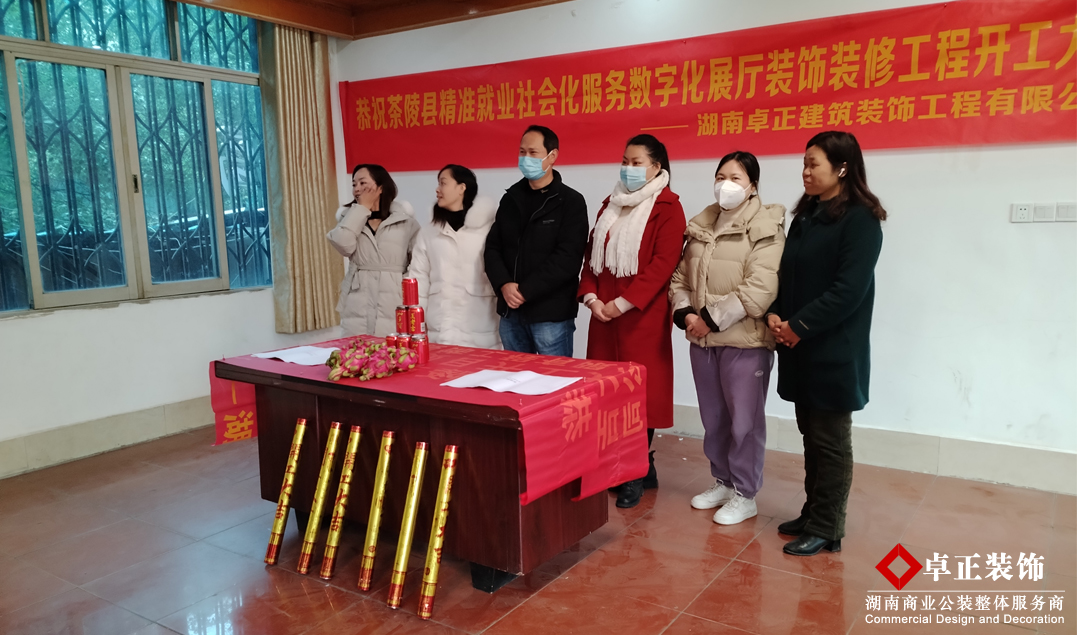 該數(shù)字展廳裝修工程項(xiàng)目是湖南卓正裝飾公司為茶林縣精準(zhǔn)就業(yè)社會(huì)化服務(wù)數(shù)字化展廳空間從設(shè)計(jì)、消防、施工一站式整裝工程,根據(jù)中國(guó)傳統(tǒng)文化選擇黃道吉日已于日前開(kāi)工,值此春風(fēng)拂柳,萬(wàn)物復(fù)蘇的良辰美景之時(shí),湖南卓正裝飾感謝茶林縣精準(zhǔn)就業(yè)社會(huì)化服務(wù)展廳公司對(duì)我們的信任支持,并熱烈祝賀茶林縣精準(zhǔn)就業(yè)社會(huì)化服務(wù)數(shù)字化展廳裝飾裝修工程開(kāi)工大吉,預(yù)祝項(xiàng)目工程完滿峻工!